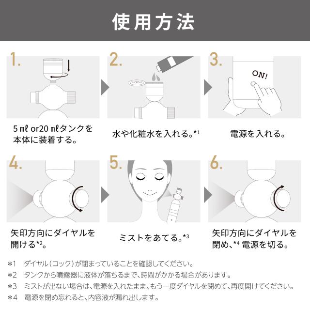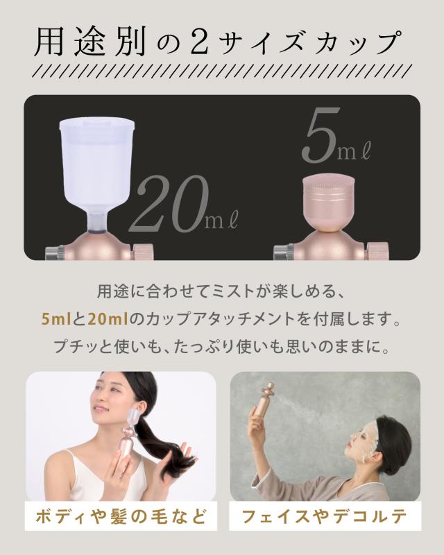 ・高圧ミストポンプで32μmのマイクロ粒子を瞬間で大量噴霧。頼もしい時短&肌活アイテム。