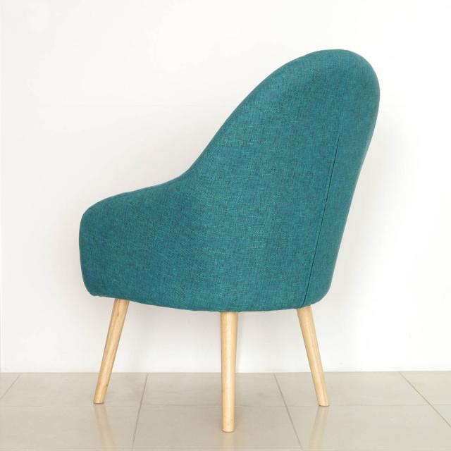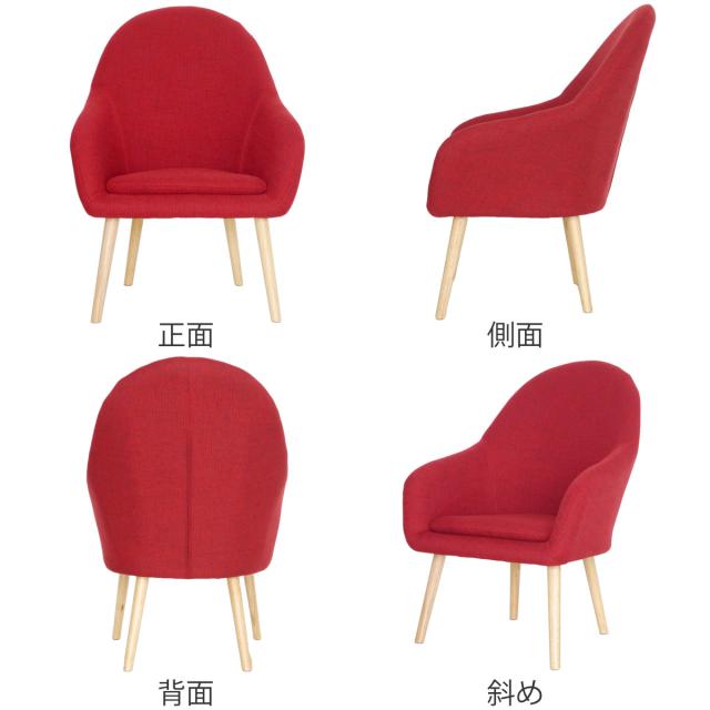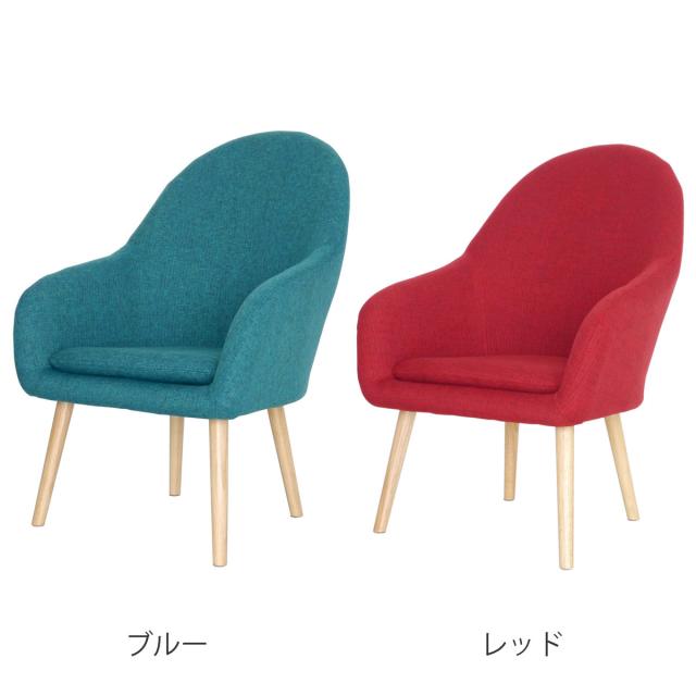 丸みのある形状が可愛いらしいデザインの一人掛けソファです。鮮やかなブルーとレッドのカラーはお部屋を彩るアクセントなってくれます。スリムにまとまった座面や、細い木脚がお部屋をすっきりと軽やかに見せるデザインとなっています。
