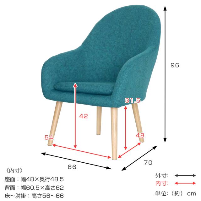 | 材質 | 本体:積層合版、木脚、ウレタンフォーム 張地:ポリエステル52%、アクリル48% 脚部:ラバーウッド(ウレタン塗装) |
