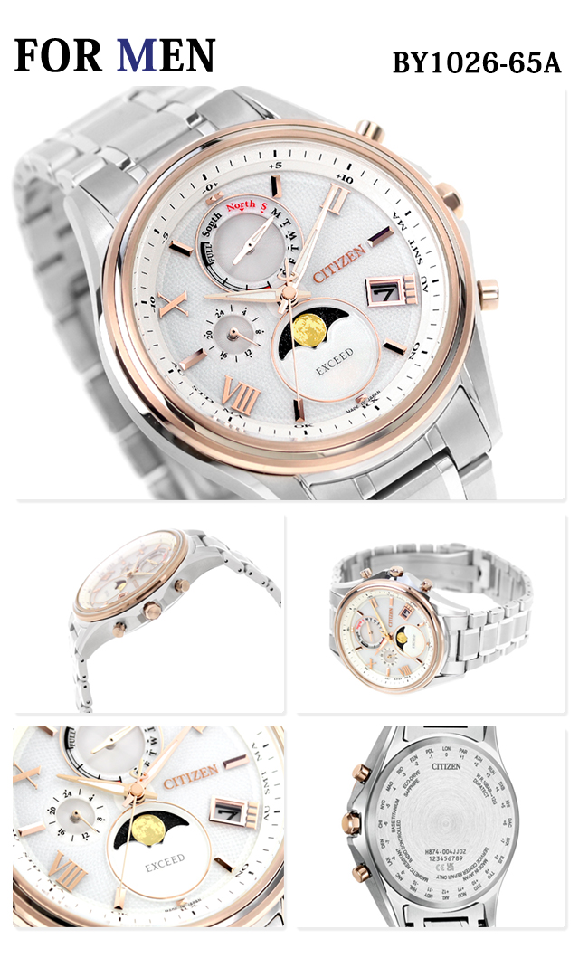 ペアウォッチ シチズン エクシード チタン ムーンフェイズ 電波ソーラー エコ・ドライブ電波 夫婦 カップル 記念日 メンズ レディース 腕時計 ブランド 名入れ 刻印 CITIZEN EXCEED BY1026-65A EE1016-66A