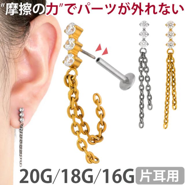 ピアス 20G 18G 16G つけっぱなしにおすすめ ジュエルラインチェーンプッシュピンラブレット ファーストピアス セカンドピアス カスタム 軟骨ピアス ボディピアス
