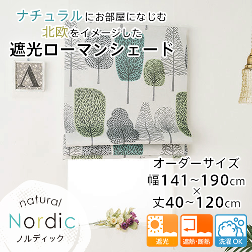 ローマンシェード シェードカーテン 遮光 シングル 送料無料 ナチュラル ノルディック シングルシェード 全7柄 幅141-190cm 丈40-80cm