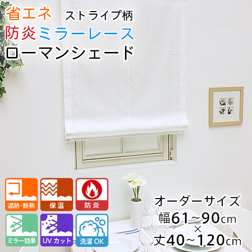 ローマンシェード シェードカーテン レース シングル 防炎 送料無料 ストライプ 省エネ ミラー レースシェード 幅61-90cm 丈40-80cm