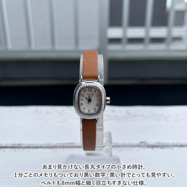 | 商品説明 | ・あまり見かけない長丸タイプの小さめ時計。1分ごとのメモリもついており黒い数字・黒い針でとっても見やすい。ベルトも8mm幅と細く目立ちすぎない仕様。 |
