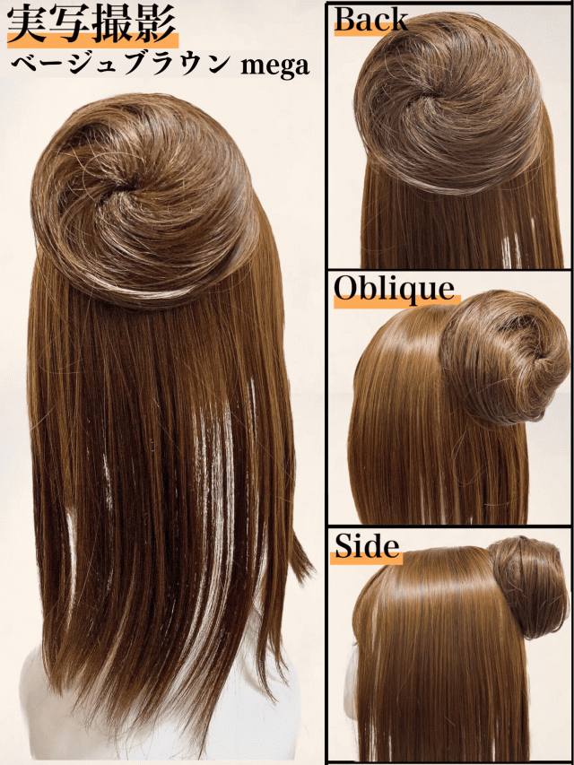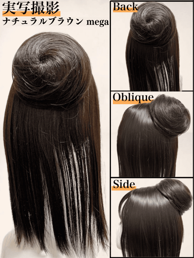 お団子ウィッグ メガ盛り ウィッグ お団子 ゴム式 ポイントウィッグ 付け毛 ストレート 日常 和装 着物 浴衣 [3点セット] レディース 女性 社交ダンス 耐熱 Uピン付 説明書付 おだんご シニヨン ブラック ブラウン Luce brillare ルスブリラーレ お団子メガ盛り+