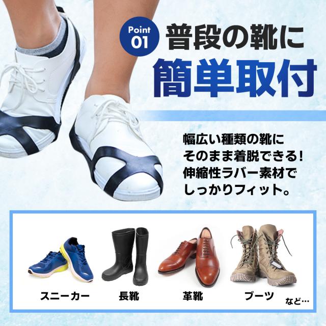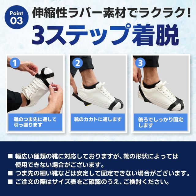 ・幅広い種類の靴にそのまま着脱できる!伸縮性ラバー素材でしっかりフィット。