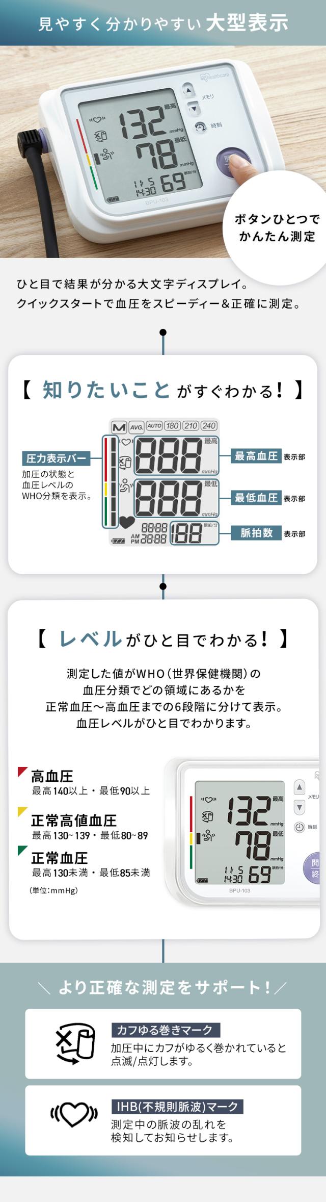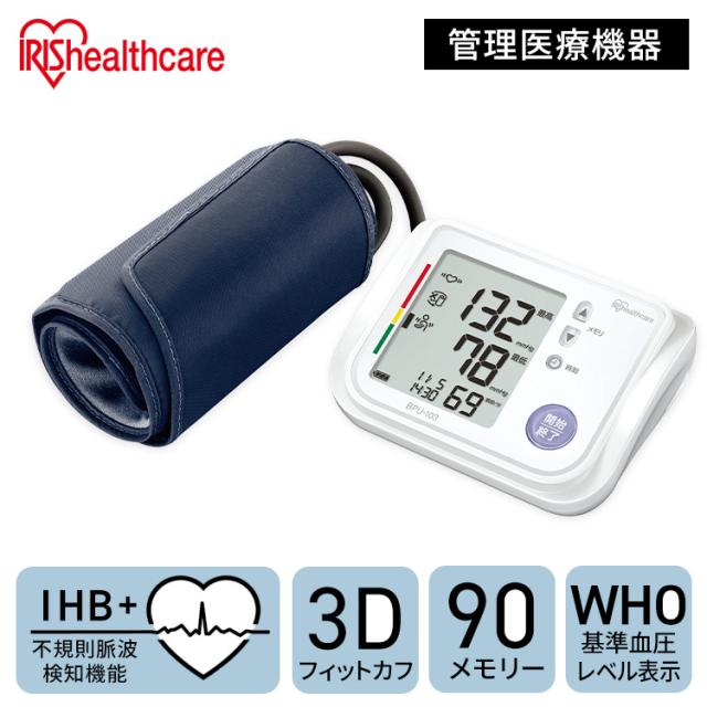 血圧計 上腕式 上腕式血圧計 家庭用 自動血圧計 上腕 3Dカフ 簡単フィット 片手で装着 大文字ディスプレイ 見やすい コンパクト 小型 軽量 簡単 操作 血圧測定器 血圧 医療 介護 健康管理 アイリスオーヤマ BPU-103 * 【管理医療機器】