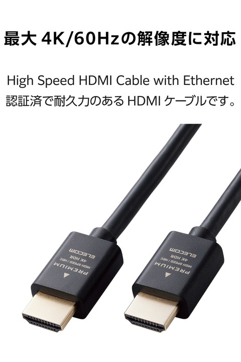 エレコム Premium HDMIケーブル スタンダード 最大4K/60Hzの解像度に対応 3.0m ブラック┃ECDH-HDP30BK