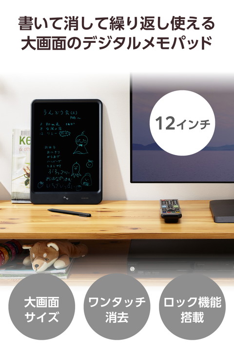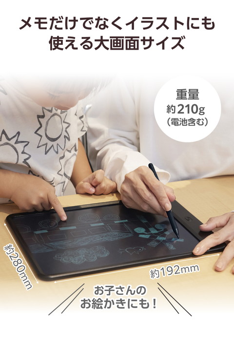 エレコム 大画面の12インチ デジタル メモパッド ブラック┃EP-12BK-AZ