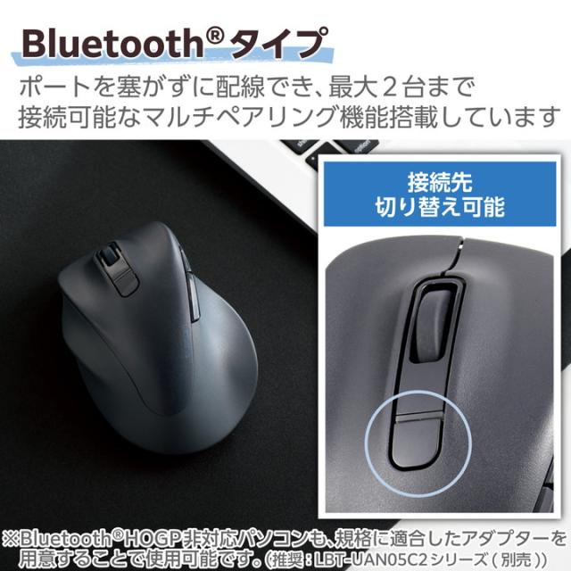 整形外科医との共同開発により自然な手の形のまま使える、握らないマウス“EX-G”シリーズの左手専用モデル。左利きの方はもちろん、右手でメモ書きや電話など別の作業をしたい方にもおすすめな左手用Bluetooth(R)5ボタンマウスです。![]() ■医師との共同開発により究極の握り心地を実現した左手専用5ボタンマウス“EX-G”。 ■一般的なマウスと異なり、右側に左クリックを配置した、人差し指で主な操作ができる左手専用設計です。左利きの方はもちろん、右手でメモ書きや電話など別の作業をしたい方にもおすすめです。 ■習志野台整形外科内科 宮川一郎院長ご協力のもと、手首を動かす「腕橈骨筋」と指を動かす「総指伸筋」に着目し、マウスを動かす手の筋に最適な角度と形状を追究しました。 ■手を自然に乗せるだけで使えるから、余計な力がかからず、手首と指の両方の負担を極限まで抑えた使い心地を実現しています。 ■“まるで握ってないような心地よさ”を実現させるために、角が取れた、繋ぎ目を感じさせない造形を採用しています。加えて、各ボタンへアクセスしやすいシームレスな操作感など、更に進化した握り心地を目指しました。 ■“EX-G”シリーズは、エムスリー株式会社が実施する、多数の医師が製品に対して客観的評価を行う「AskDoctors評価サービス」の認定商品です。医師100名の99%が「本製品を勧めたい」と評価しました。 ※2023年4月 AskDoctors調べ ■左右ボタンには、パナソニック株式会社が開発した静音スイッチを採用。クリック感と耐久性を損なわず、高い静音性を実現しました。 ■気になるクリックのカチカチ音が響かないため、会議中のパソコン操作や在宅勤務時の早朝・夜間の作業などでも気にせず使用できます。 ■抗菌加工により、マウスの表面に付着した菌の繁殖を抑えて清潔に保ちます。(抗菌範囲:マウス筐体、ホイール部分) ■※こちらの製品は表面上における細菌の増殖を抑制、あるいは阻害する性能を有したもので、財団法人日本規格協会(JSA)が定める抗菌性試験に準拠したものです。 ■ワイヤレスでデスク周りをすっきりと使えるBluetooth(R)接続タイプです。 ■Bluetooth(R)HOGPに対応したパソコンであれば、レシーバーを接続することなくマウスを使用できるため、USBポートの少ないパソコンやタブレットにぴったりです。 ■※Bluetooth(R)HOGPに対応していないパソコンでも、規格に適合したBluetooth(R)アダプターを用意することで使用可能です。(推奨Bluetoothアダプター:LBT-UAN05C2 シリーズ(別売)) ■Webサイトやフォルダの操作時に便利な「進む」「戻る」ボタンが付いた5ボタンタイプです。 ■中指の先端から手のひらの下までの長さが165mm以下の方にピッタリとフィットするSサイズです。 ■※上記は参考値です。 ■小さい凹凸やホコリがある環境でも正確にポインターを動かせる“BlueLEDセンサー”を搭載することで、木材・樹脂・ガラス製のデスクや、ノート、テーブルクロスの上などでも快適に操作できます。 ■無料でダウンロードできるボタン機能割り当てソフトウェア“エレコムマウスアシスタント”を利用すると、左右ボタンの切り替えやボタンをお好みの機能にカスタマイズできます。 ■最大2台のBluetoothマウス対応機器に接続可能な接続先切り替え機能を搭載しています。 ■本体上部のボタンで簡単に接続先を切り替えられるため、家ではパソコン、外ではタブレットなど、複数のデバイスを併用している方におすすめです。 ■自社環境認定基準を1つ以上満たし、『THINK ECOLOGY』マークを表示した製品です。 ■廃棄物削減に取り組み、製品に同梱する取扱説明書等をペーパーレス化した製品です。 ![]() ■接続方式:Bluetooth(R)無線 ■Bluetooth規格:Bluetooth 5.0 Class2 ■対応プロファイル:HOGP(HID Over GATT Profile) ■対応機種:Bluetooth(R)HOGPに対応したWindows OS、Android、macOS、iOS、iPadOS、ChromeOS 搭載機 ■対応OS(Windows):Windows 11/10 ■対応OS(Android):Android 12〜13 ■対応OS(macOS):macOS Ventura 13 ■対応OS(iOS):iOS 16 ■対応OS(iPadOS):iPadOS 16 ■対応OS(その他):ChromeOS ■通信方式:GFSK方式 ■電波周波数:2.4GHz帯 ■電波到達距離:最長約10m ※ご使用環境により異なる場合があります。 ■接続先切り替え機能:対応(Bluetooth(R):2台) ■読み取り方式:BlueLED ■センサー分解能:2000DPI ■ボタン数:5個 ※ホイールボタン含む ■ホイール数:1個 ■電源:単3形アルカリ乾電池、単3形マンガン乾電池、単3形ニッケル水素電池のいずれか1本 ■電池寿命:最長約16カ月(アルカリ乾電池使用時の目安) ※ご使用状況により異なる場合があります。 ■サイズ分類:Sサイズ ■外形寸法:幅約71mm×奥行約108mm×高さ約52mm ■重量:約82g ※電池含まず ■内容物:マウス本体×1台、動作確認用単3形アルカリ乾電池×1本 ■カラー:ブラック ■保証期間:2年間 |