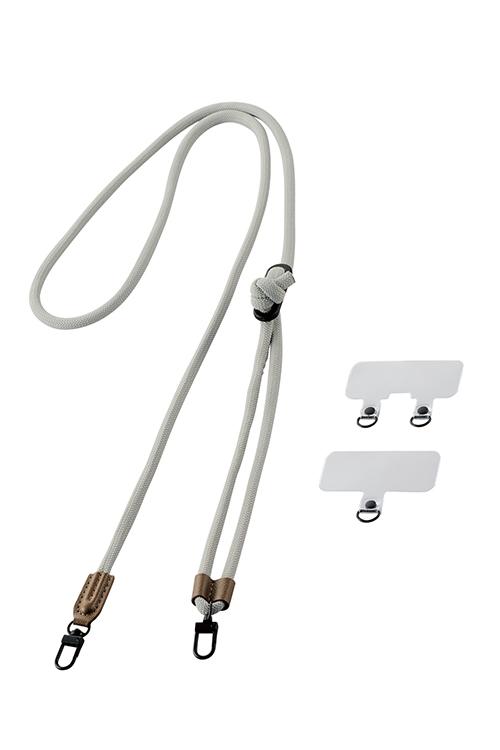 エレコム スマホ ショルダーストラップ 丸紐 6mm ストラップホールシート付属 1口タイプ×1枚 2口タイプ×1枚┃P-STSDH2R06GYL