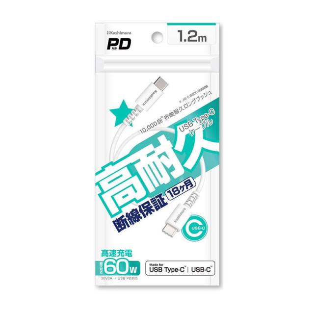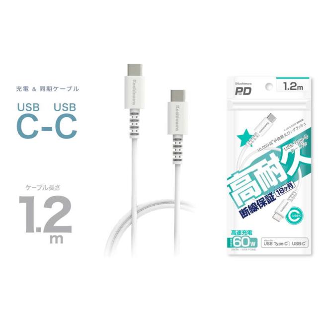 USB充電ケーブル 1.2m type-C to C iPhone15 スマホ タブレット PD対応 高速充電 高耐久 断線防止 充電&同期 ホワイト【メール便 送料無料】