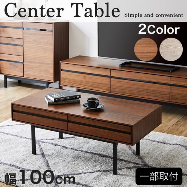 引き出し2杯付き センターテーブル 幅100cm 2色対応 ローテーブル リビングテーブル テーブル 机 収納 引き出し 収納棚 小物収納 ソファーテーブル コーヒーテーブル カフェテーブル 木製 シンプル おしゃれ モダン