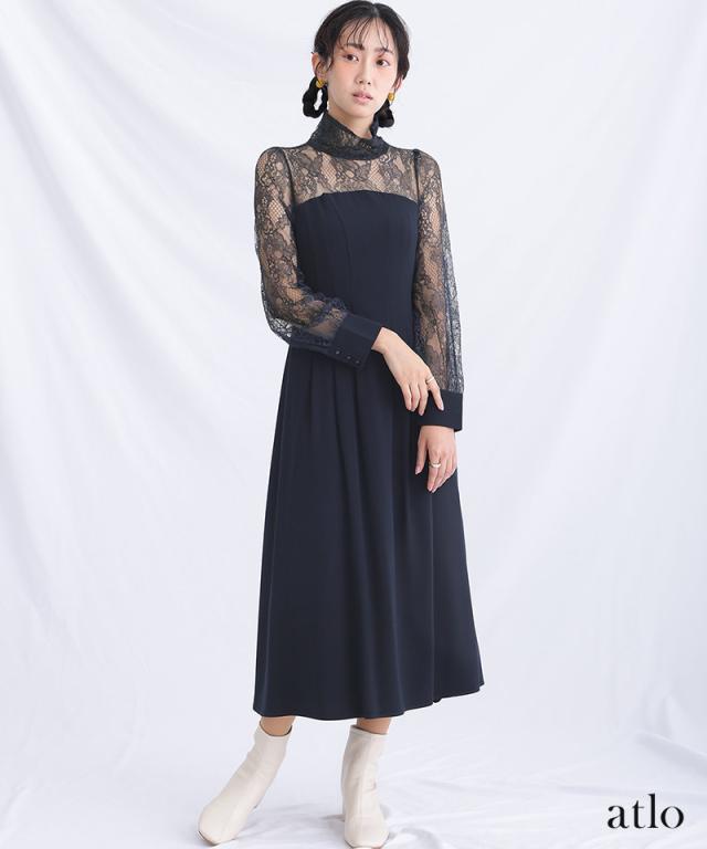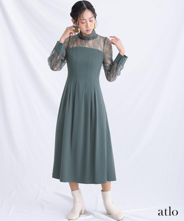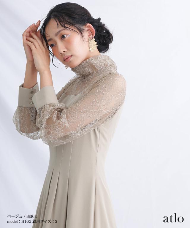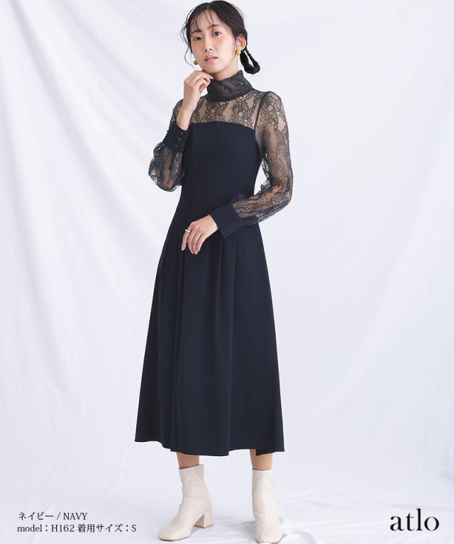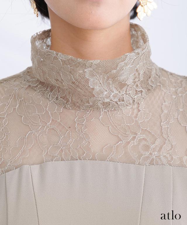 ハイネック切替レースドレス【794231822】20代・30代・40代・54代長袖・膝丈・セットアップ・スカート・体型カバー・ジャケット・テーラード・スーツ・大きいサイズなど・即日発送・送料無料結婚式・婚活・披露宴・顔合わせ・二次会・同窓会・お呼ばれ・食事会・謝恩会・親族・七五三・お宮参り・冠婚葬祭・弔事・女子会・デート・入学式・卒業式・入園式・卒園式・ママ・マタニティー・セレモニー・セレブ・パーティー