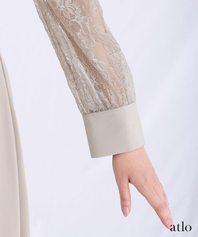 デコルテから袖にかけての透け感が女性らしさをプラス。