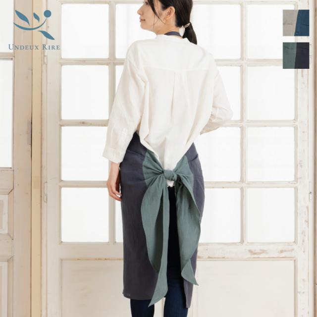 【メール便1枚のみ送料無料】Undeux Rire クリオネ リネンホルターネックエプロン 日本製 個性 薄手 ナチュラル ギフト プレゼント【N】【M】