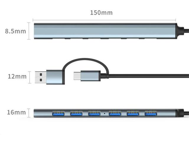 8ポート対応+USBとタイプCの2種のコネクタに対応、薄型・小型高機能ハブ