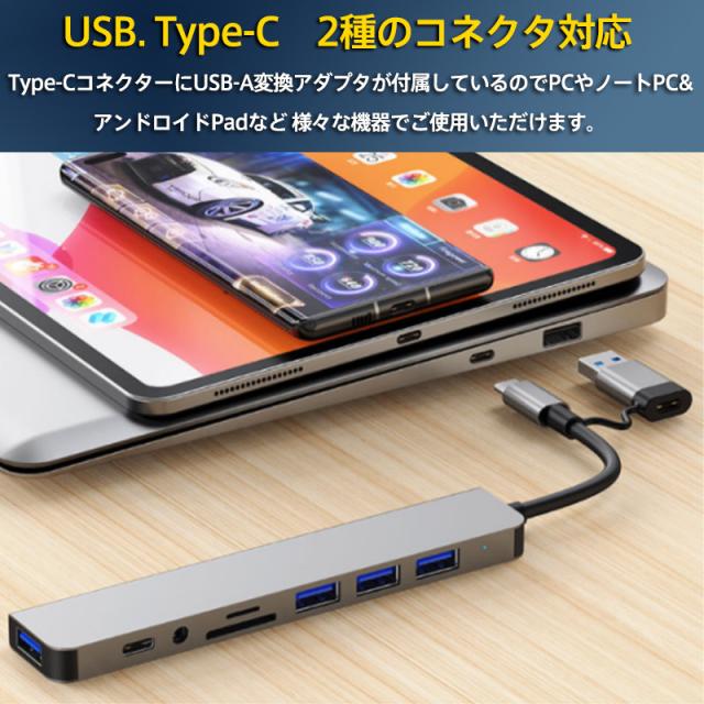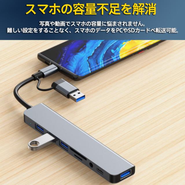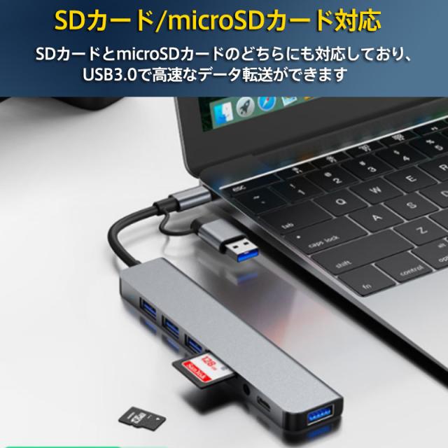 USBハブ3.0 Type-C ドッキングステーション 8in1 8ポート 変換アダプタ 薄型 軽量設計 usbポート カードリー