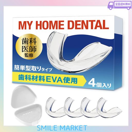 【超簡単!フィット感抜群マウスピース】MY HOME DENTALの自分専用のマウスピース。型取り必要、4個入り、専用ケース付き。
