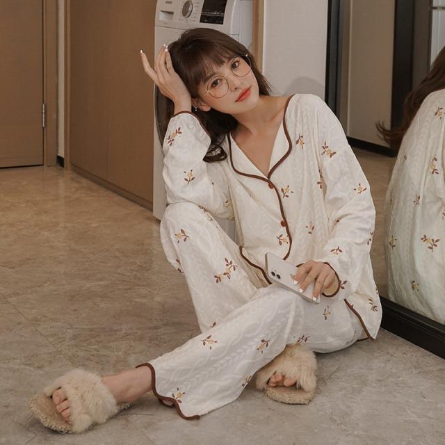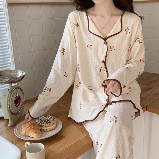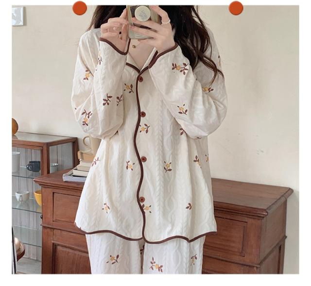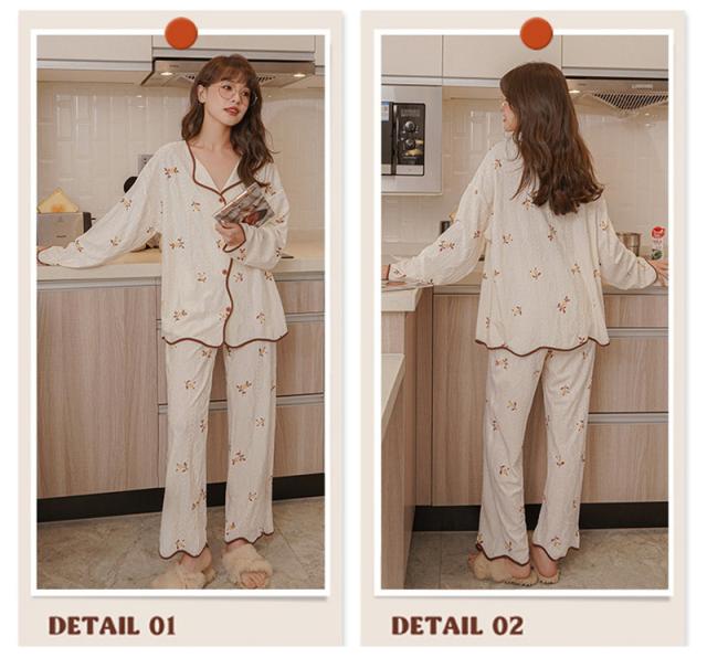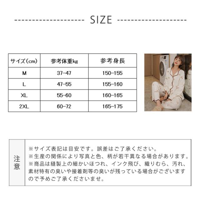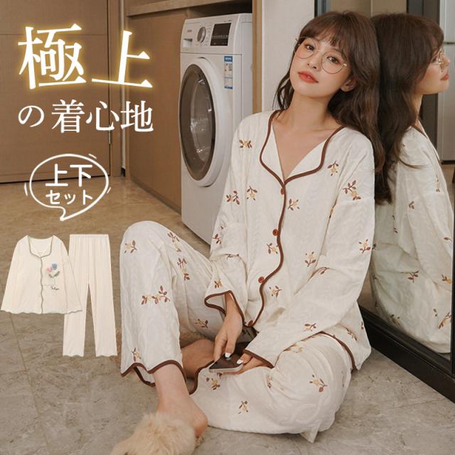 ルームウェア パジャマ レディース 前開き 上下セット 長袖 長ズボン ゆったり お尻隠れ 花柄 部屋着 寝間着 通気性 外出 柔