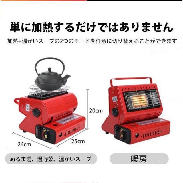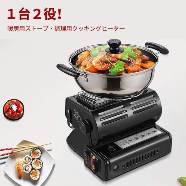 ガスヒーター ストーブ 多機能 クッキングヒーター 1台2役 アウトドアヒーター 角度調節 速暖 屋内用 防災 釣り キャンプ 屋外 防寒対策