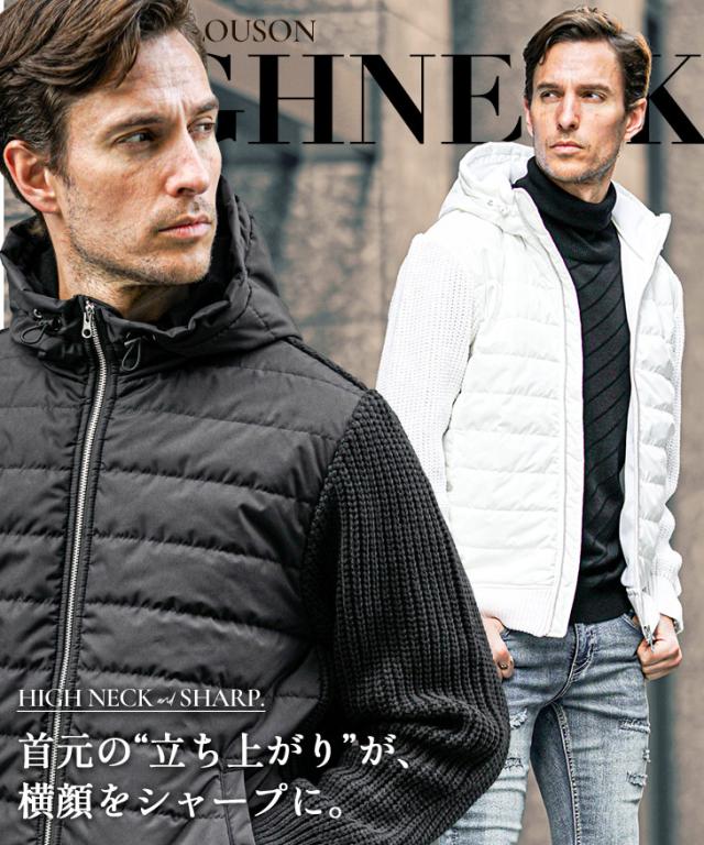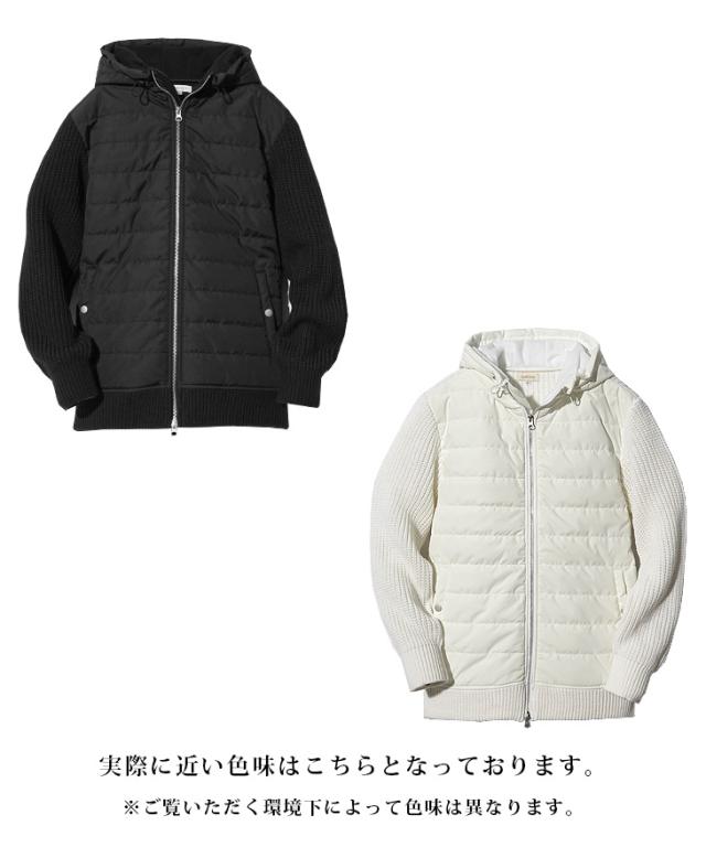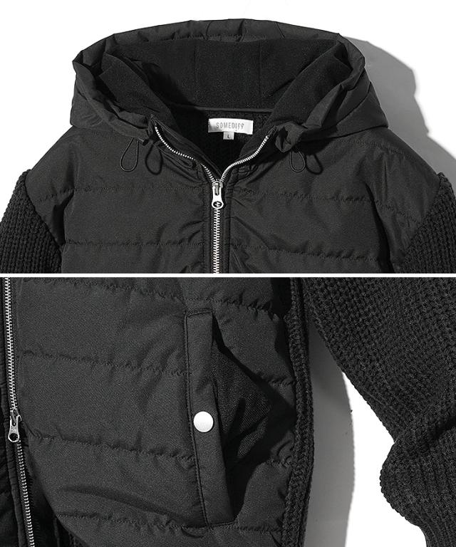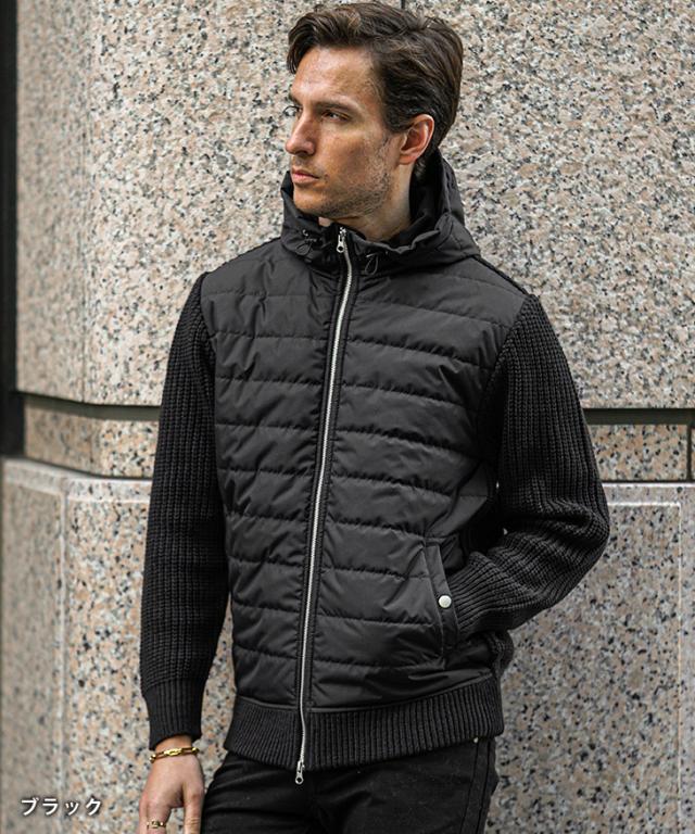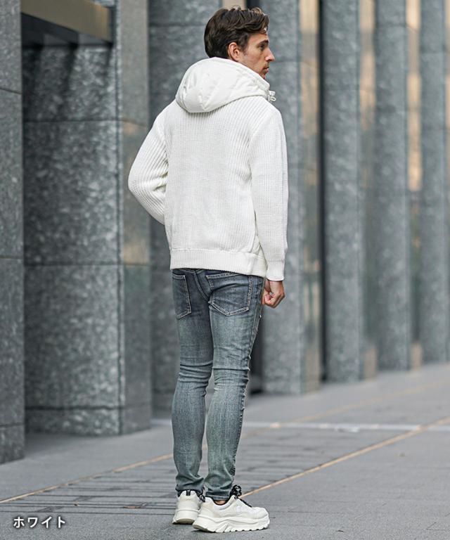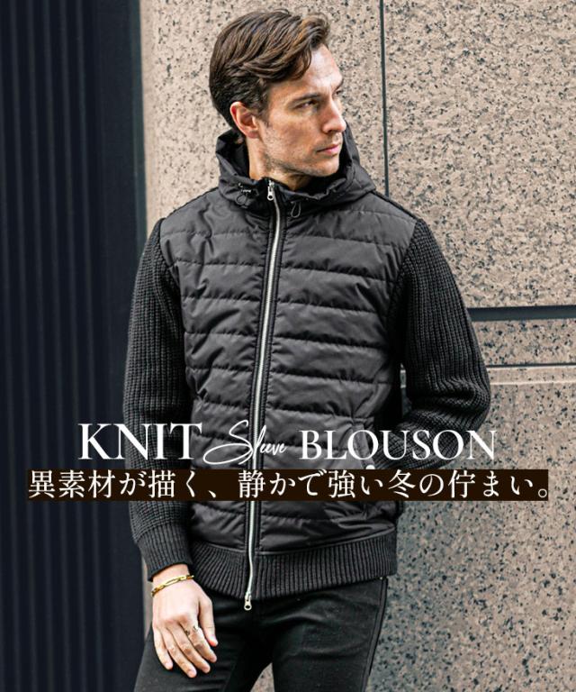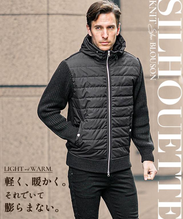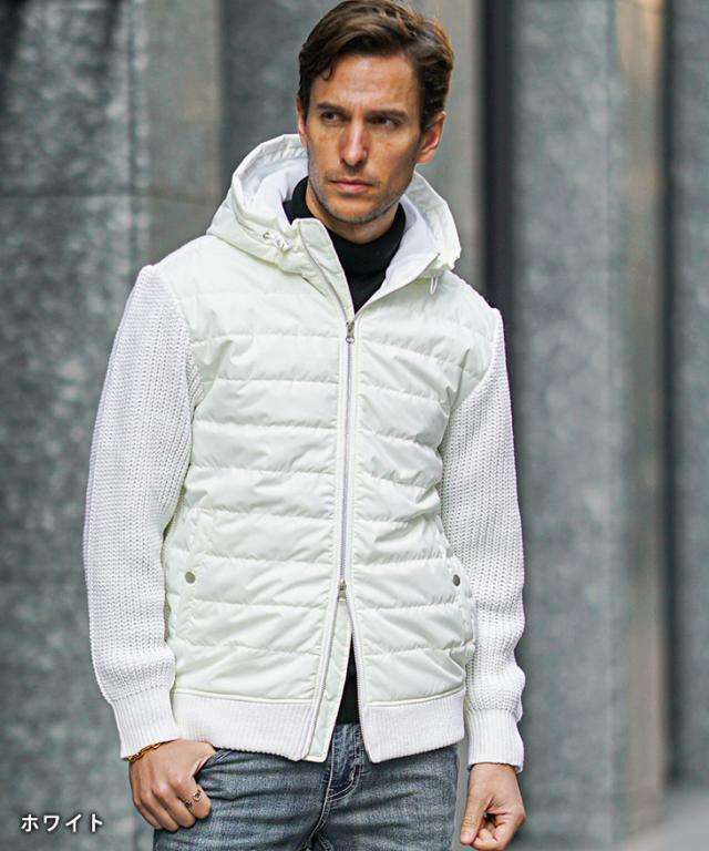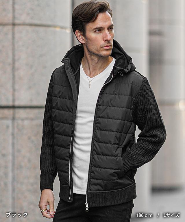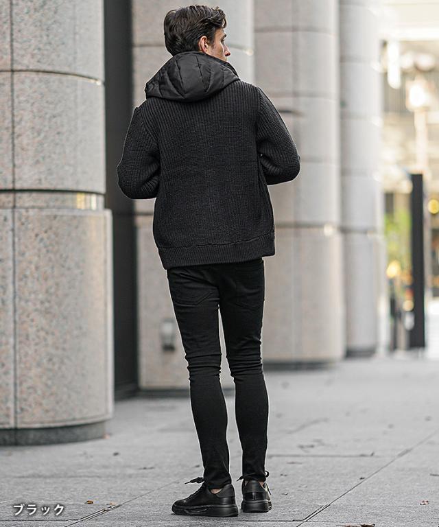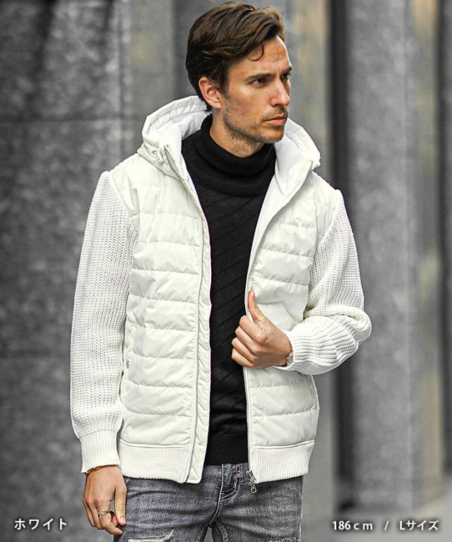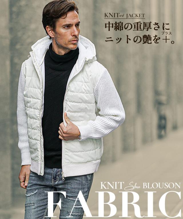 アウター メンズ 冬 ブルゾン メンズ ブランド ニット アウター 切り替え ダブルジップ フード付き 中綿 ジップアップ ニットブルゾン おしゃれ スタンドネック ニットジャケット カジュアル ブラック ホワイト 冬服 冬物 ちょいワル ジョーカー JOKER 新作 冬新作