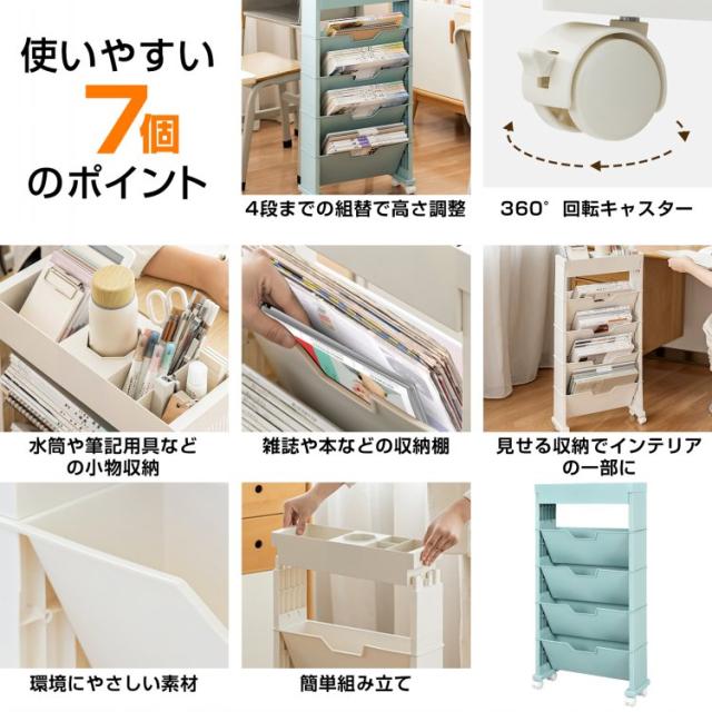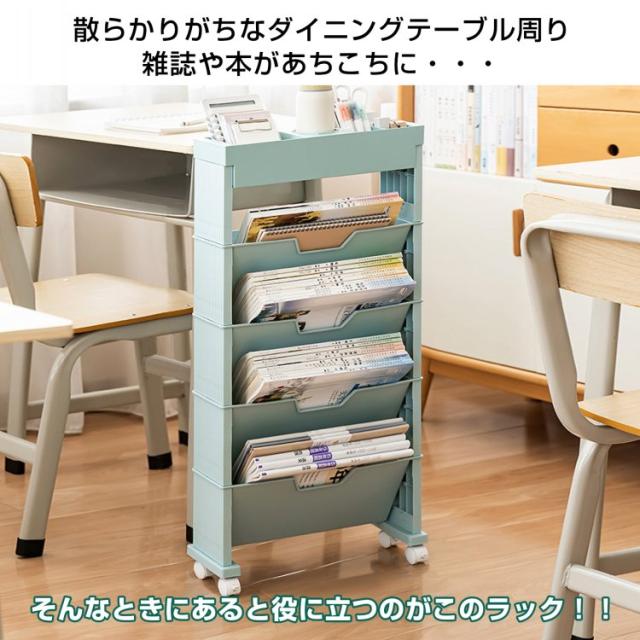 新生活 収納ワゴン キャスター付き マガジンラック おしゃれ スリム 大容量 キャスター付き ワゴンタイプ 移動 雑貨屋文具 小物 本 収納 収納用品 理容室 散髪屋 床屋 バスケット sg109
