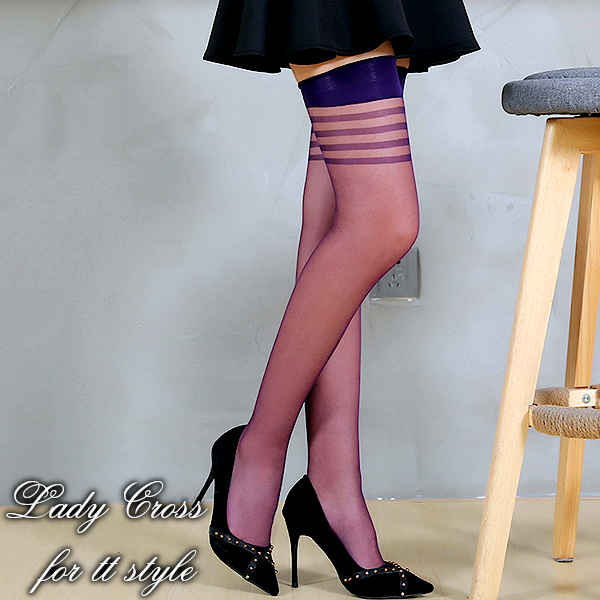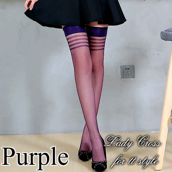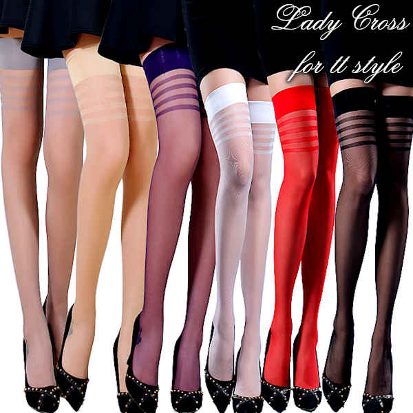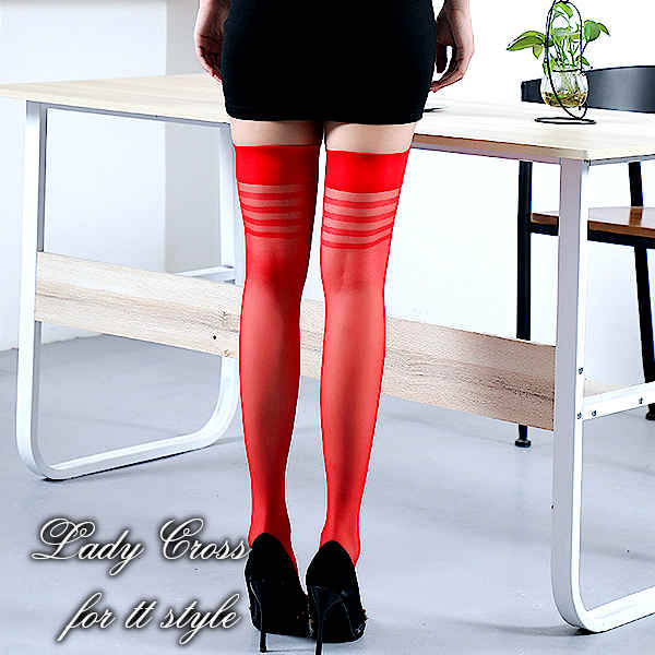 ストッキング 太もも丈 シースルー セクシー カラフル ストライプライン かわいい レディース ガーター パンスト 美脚 6カラー 送料無料 ネコポス便