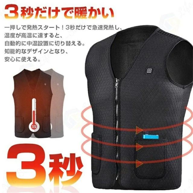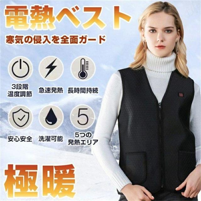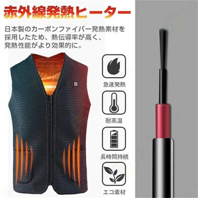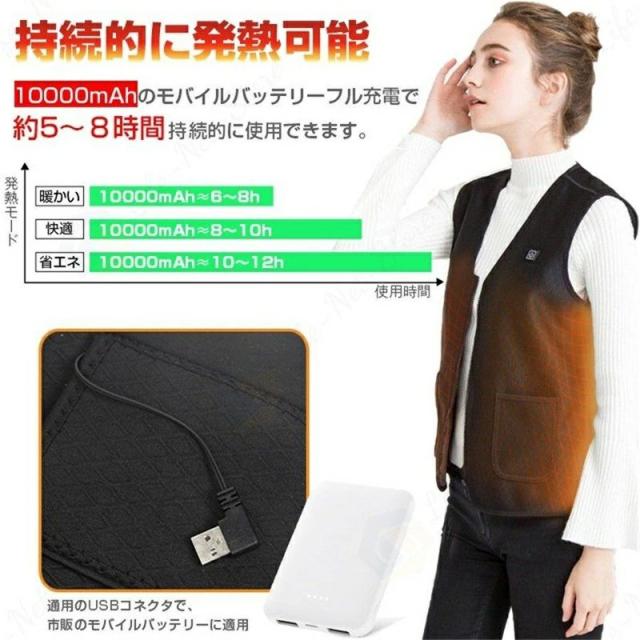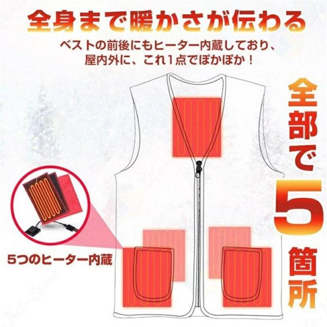 電熱ベスト ワークマン 5つヒーター 発熱ベスト 裏起毛 モバイルバッテリー 電熱 ベスト USB メンズ レディース 発熱加熱 防寒 3段階調整 PSE認証済み