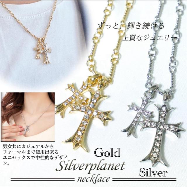 クロス ネックレス クロスネックレス 十字架 ダブル ペンダント ジルコニア ラインストーン ダイヤ シルバー925 アクセサリー ゴールド ネックレス クロスデザイン 十字架 メンズネックレス ネックレスメンズ ネックレス 二連 ゴールド ネックレス 十字架 ダブル ペンダント ラインストーン CH クロムハーツ 好きに ゴールド シルバー