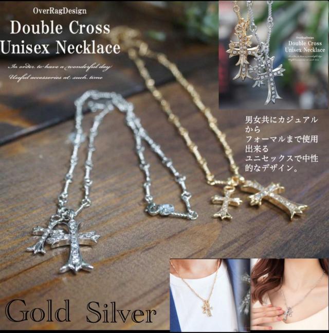 クロス ネックレス クロスネックレス 十字架 ダブル ペンダント ジルコニア ラインストーン ダイヤ シルバー925 アクセサリー ゴールド ネックレス クロスデザイン 十字架 メンズネックレス ネックレスメンズ ネックレス 二連 ゴールド ネックレス 十字架 ダブル ペンダント ラインストーン CH クロムハーツ 好きに ゴールド シルバー