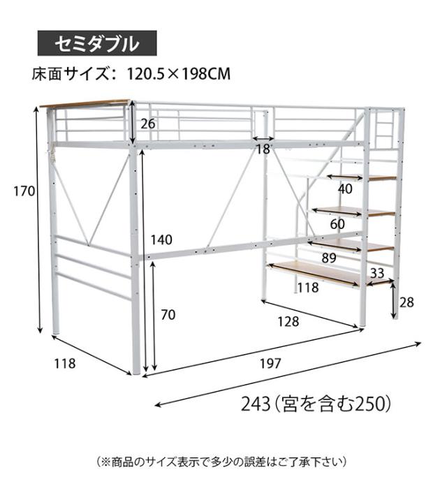 「クーポン配布中」SD ロフトベッド 階段付き パイプベッド 耐震ベッド セミダブルベッド 宮・コンセント付き 子供ベッド 二段ベッド 収納付き 子供部屋二段ベッド パイプベッドフレーム スチール 新生活応援