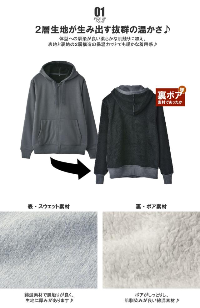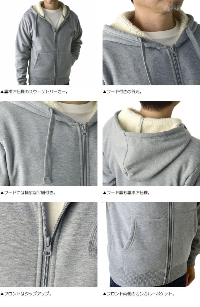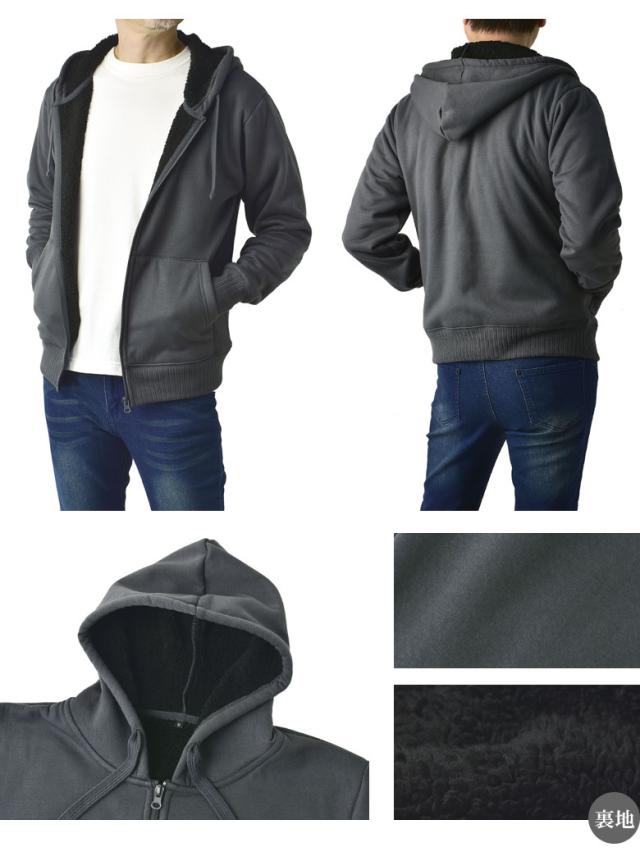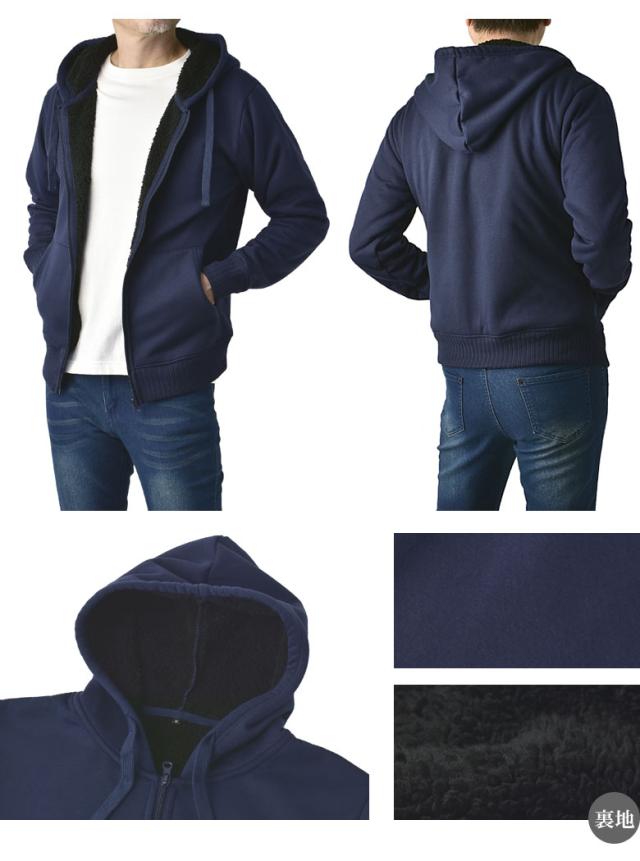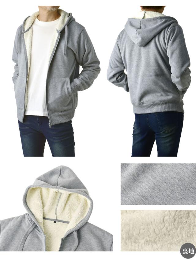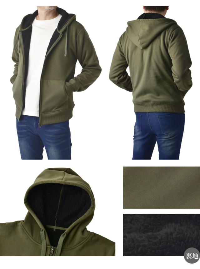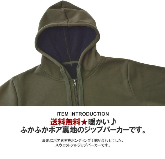 送料無料☆暖かい♪ふかふかボア裏地のジップパーカーです。