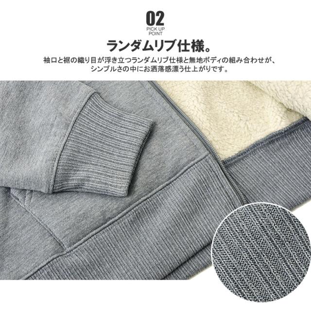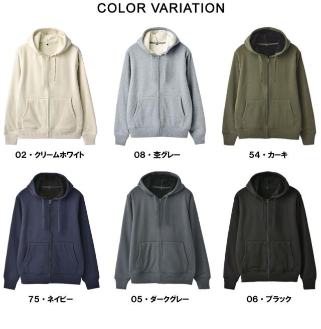 ●裏地にボア素材をボンディング(貼り合わせ)した、スウェットフルジップパーカーです。