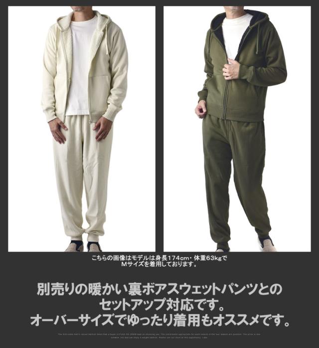●暖かい裏ボアスウェットパンツと上下で組み合わせることができます。