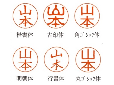 ◆書体は6種類から…楷書体・古印体・明朝体・角ゴシック体・丸ゴシック体・行書体