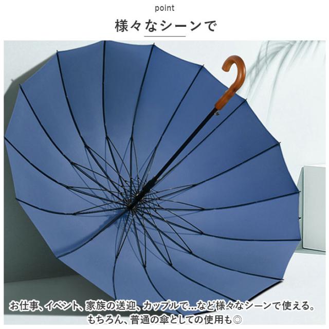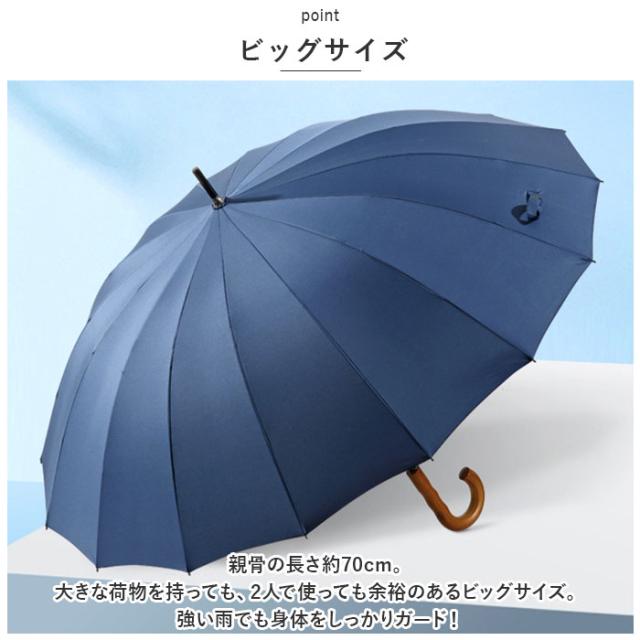 | 商品説明 | ・強い雨でも安心。16本の親骨で耐風性もバツグン◎ビッグサイズの長傘が登場。 【ビッグサイズ】 ・親骨の長さ約70cm。大きな荷物を持っても、2人で使っても余裕のあるビッグサイズ。強い雨でも身体をしっかりガード! 【様々なシーンで】 ・お仕事、イベント、家族の送迎、カップルで...など様々なシーンで使える。もちろん、普通の傘としての使用も◎ 【丈夫なグラスファイバー製】 ・親骨は、強い風もしなやかに受け止めるグラスファイバー素材を使用しているので、大雨や強い風の日も安心。 【ジャンプ傘】 ・片手で開ける便利なジャンプ傘。荷物で手がふさがっていても大丈夫。パッと開いてすぐに使える♪ 【親骨16本】 ・親骨を16本使用した丈夫な作り。傘のシルエットもクラシックな印象になり、おしゃれさもUP☆ 【撥水加工】 ・傘布には撥水加工を施し、雨粒をしっかり弾くよう設計。使いやすい工夫で、通勤通学、お出かけも快適。 【スナップボタン式】 ・つゆ先をまとめる便利な留めバンドは、スナップボタン仕様。パチッと留めるだけでOK。親骨が多いと傘布が広がりにくくまとめやすい◎ 【上品なシンプルデザイン】 ・持ち手はしっかりと握りやすいウッド素材。マットなゴールドの金具でシックに仕上げ、洗練された印象に。シンプルなので幅広いシーンで使用できる。 |