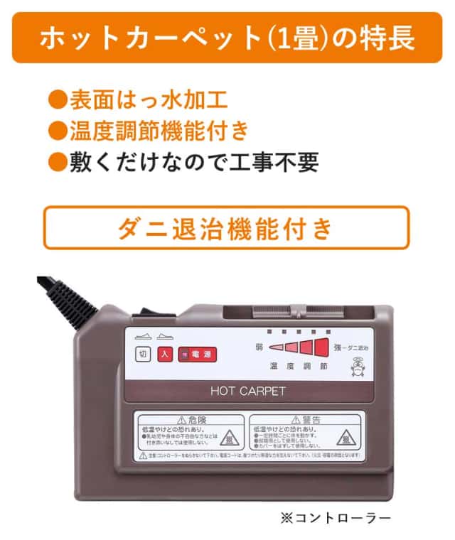 木目フローリングホットカーペット1畳【WHC-105KMD】ホットマット 長方形 ミニカーペット 電気カーペット 床冷え対策 温度調節 表面撥水加工 ダニ退治機能付 日本製