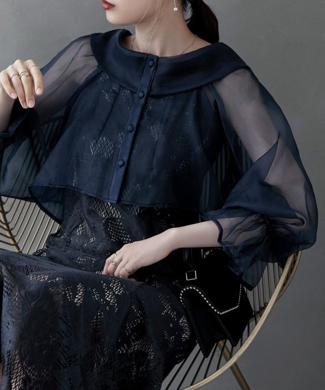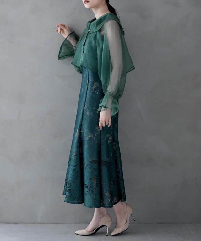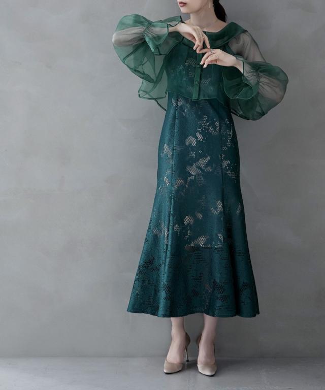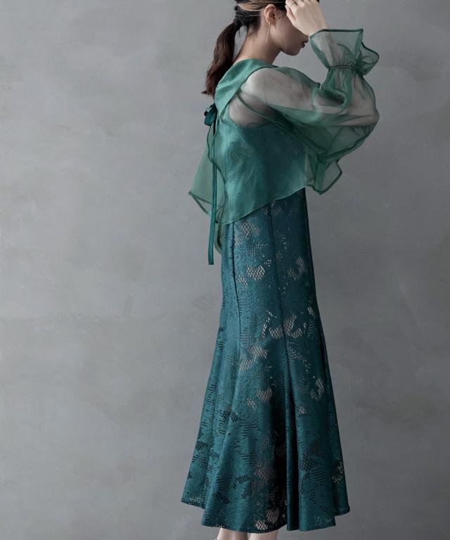 etoll. エトル シアーショートブラウスとマーメイドラインが美しいキャミワンピースがセットになったオケージョンセットドレス。