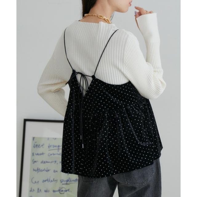 ビス(VIS)/【選べる着丈】ラメドットベロアキャミトップス【洗える】