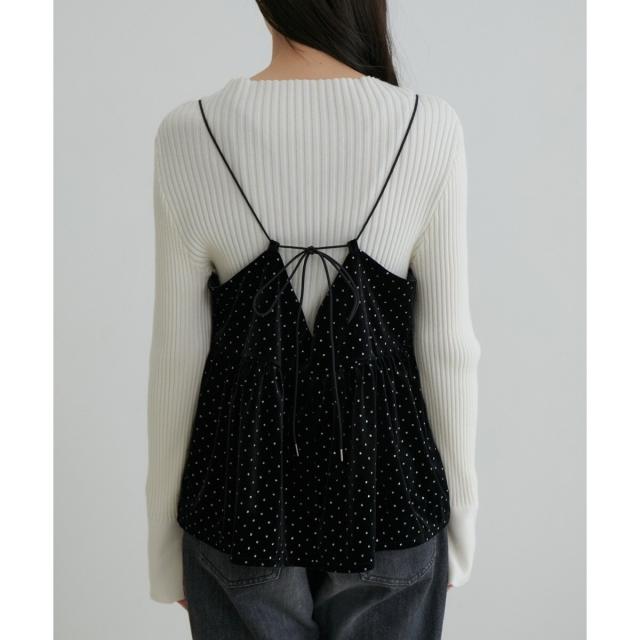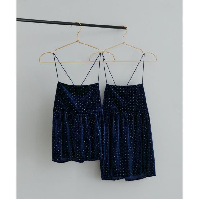 今年注目素材のベロアにラメドットのプリントを施したキャミソールです。