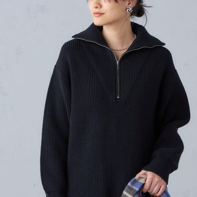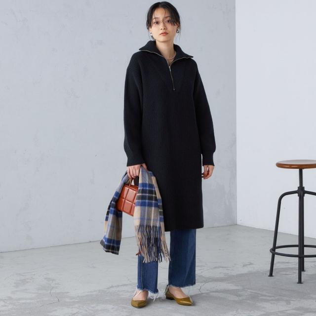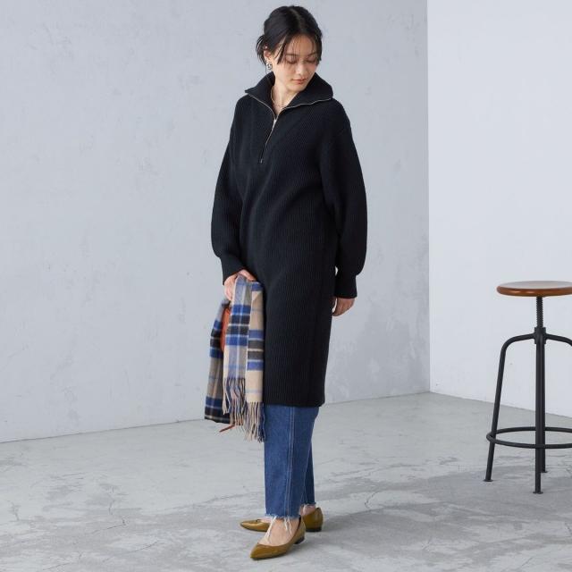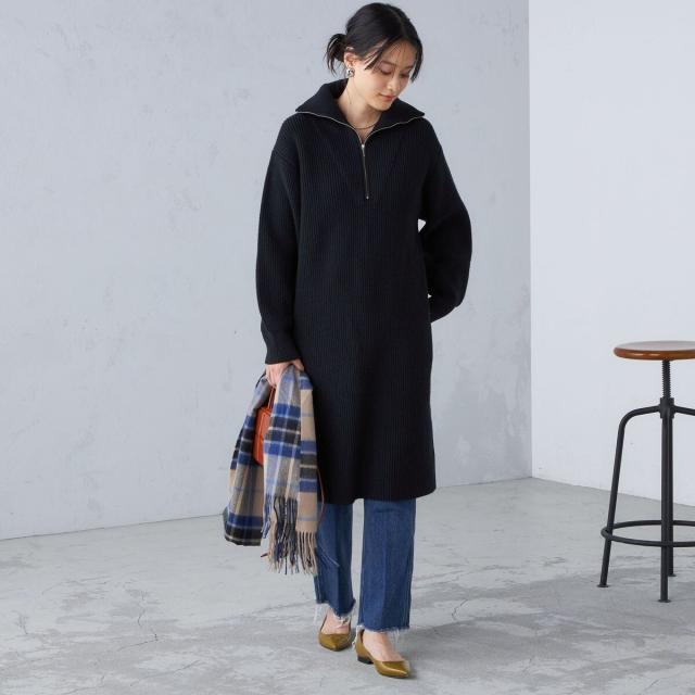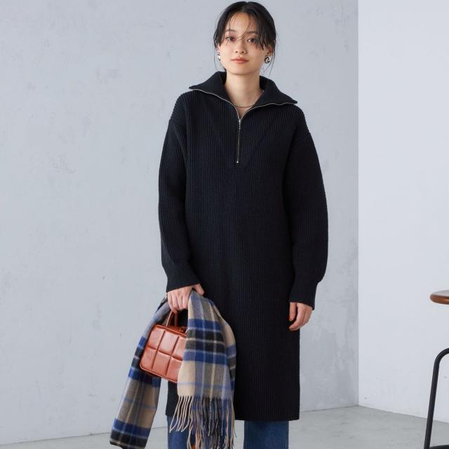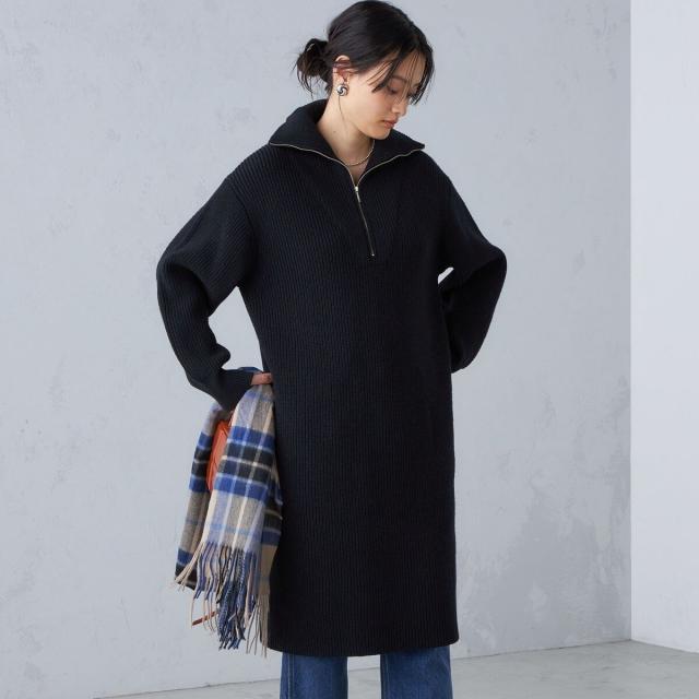 ニットらしい肉感と編地感のあるハーフジップワンピースです。