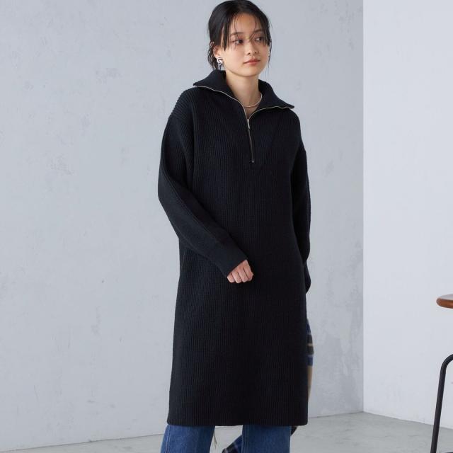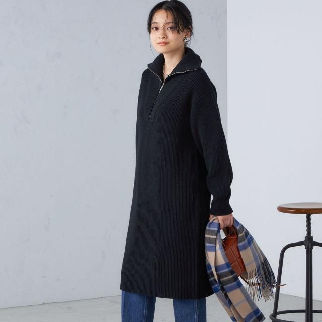 シップス(SHIPS)/〈手洗い可能〉片畦編み ハーフ ジップ ワンピース