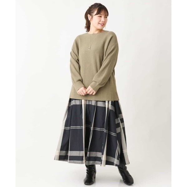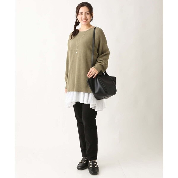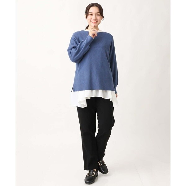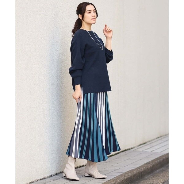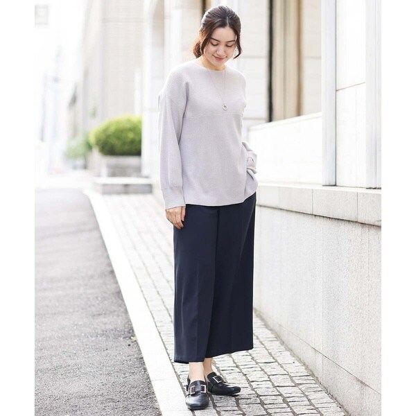 きれい目にもカジュアルにも着まわせる万能ニットです。