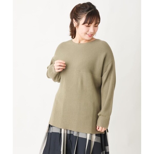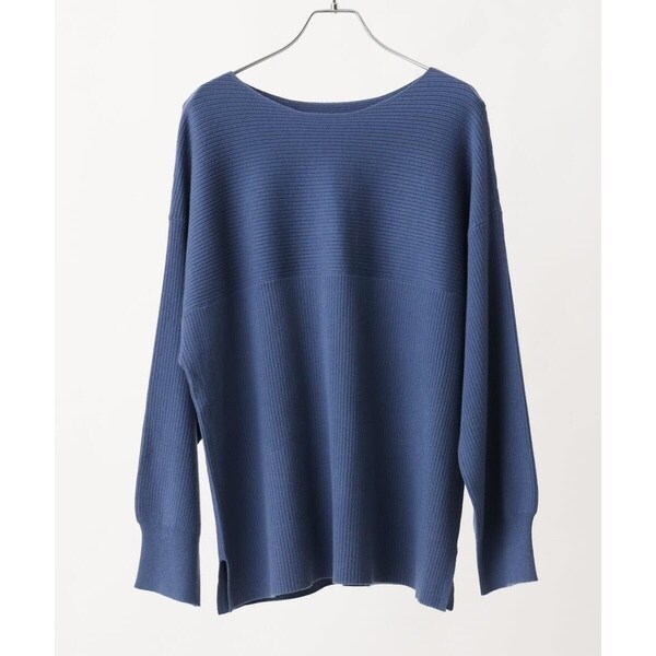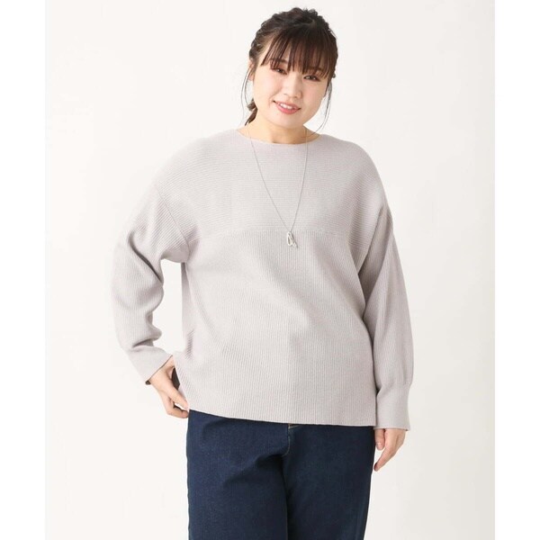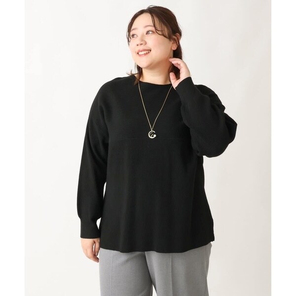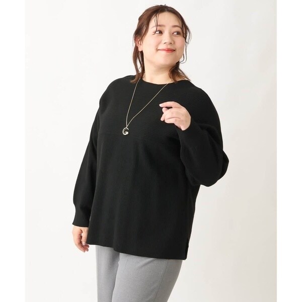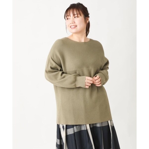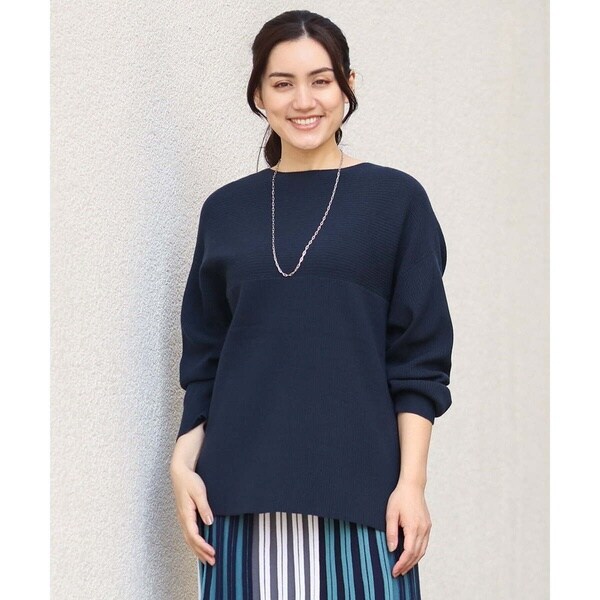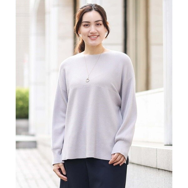 シンプルなデザインながら、胸元の横リブ使いで少し抜け感のある大人のベーシックニットに仕上げています。