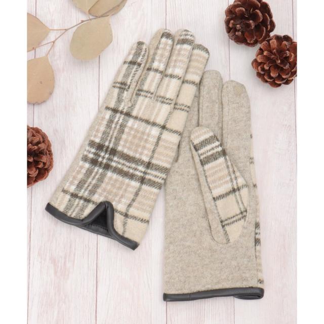 チェック起毛生地と無地のコンビ素材のグローブです。