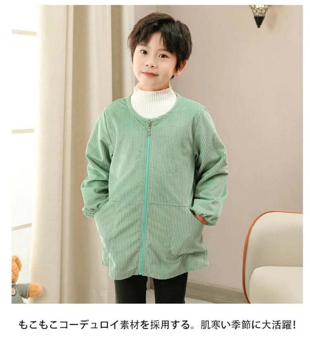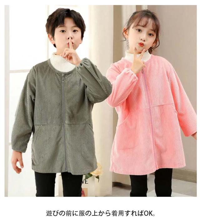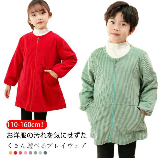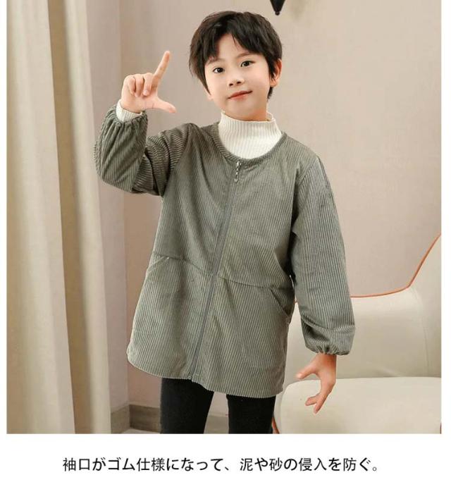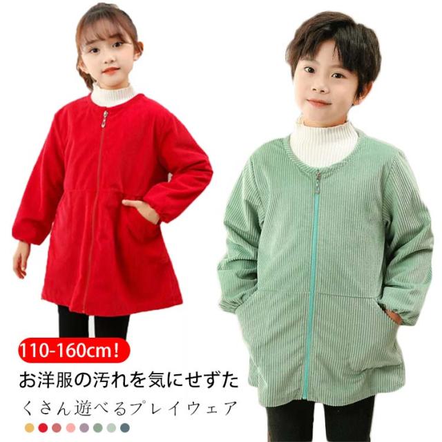 砂場着 キッズ プレイウエア 長袖 子供 コーデュロイ 秋冬 あったか キッズ トップス 女の子 男の子 子供服 前開き 子ども こども ベビー お砂場 遊び着 汚れ防止 小学生 幼稚園
