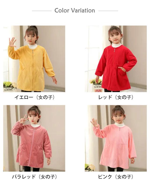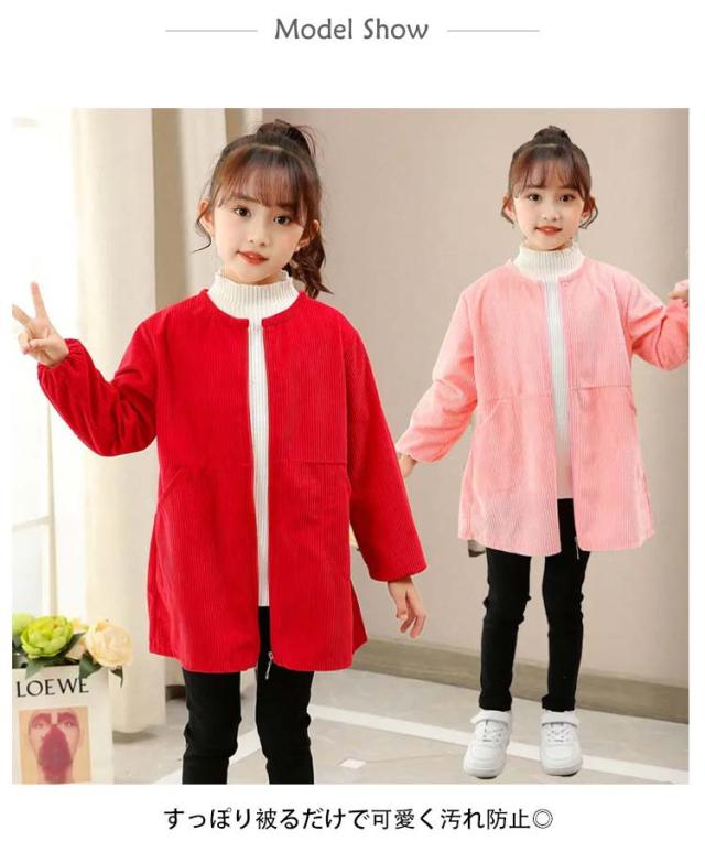 | 110-160cm!お洋服の汚れを気にせずたくさん遊べるプレイウェア すっぽり被るだけで可愛く汚れ防止◎ 袖口がゴム仕様になって、泥や砂の侵入を防ぐ。 フロントファスナー仕様でお着替えラクチン♪ 遊びの前に服の上から着用すればOK。 もこもこコーデュロイ素材を採用する。肌寒い季節に大活躍! 汚れてもお手入れしやすく、お砂場遊び、おゆうぎ、お料理のお手伝い、お絵かきなどいろんなシーンに重宝します。 | |