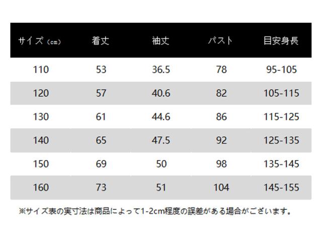 | サイズ | 110 120 130 140 150 160 |