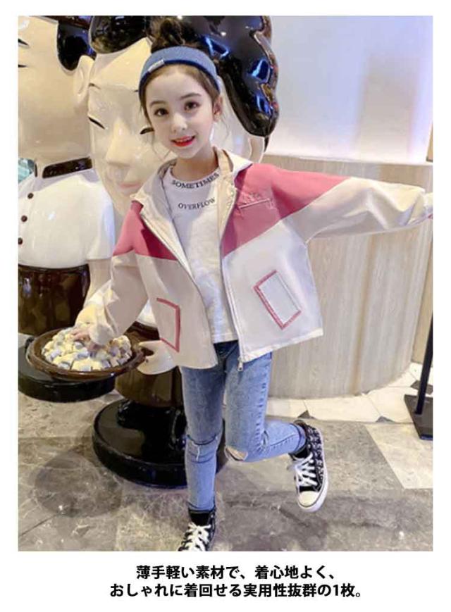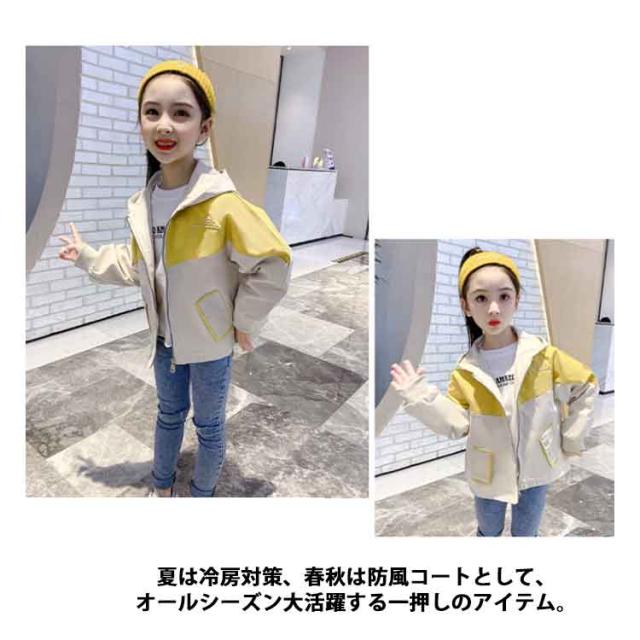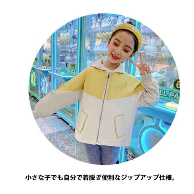 マウンテンパーカー 女の子 防風 ウインドブレーカー コート 上着 ジャケット マウンテンパーカー 140 キッズ 110 フード付き アウター 160 春 秋 薄手 ジップアップ バイカラー ブルゾン ジュニア 子供服